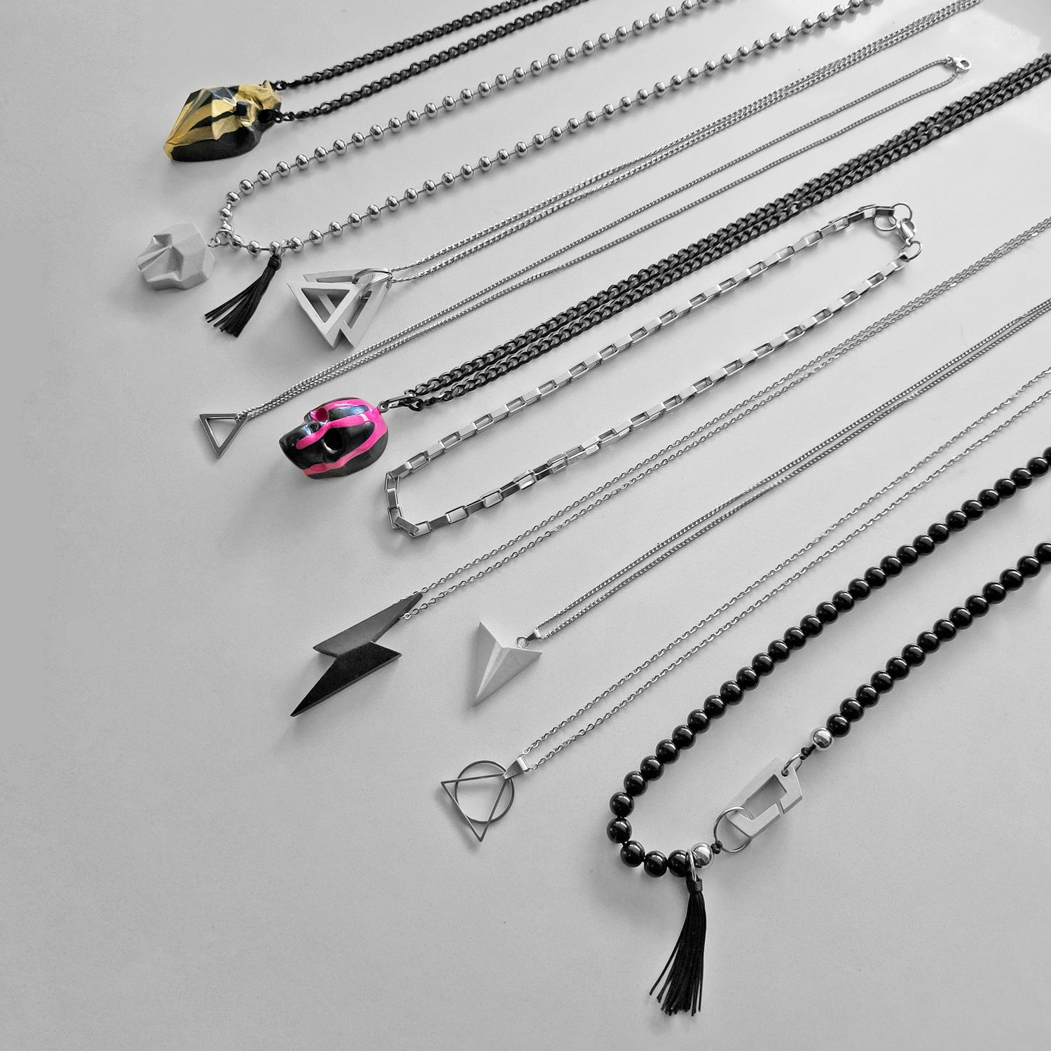 Conoce toda nuestra colección de collares con dijes geométricos de concreto y acero inoxidable
