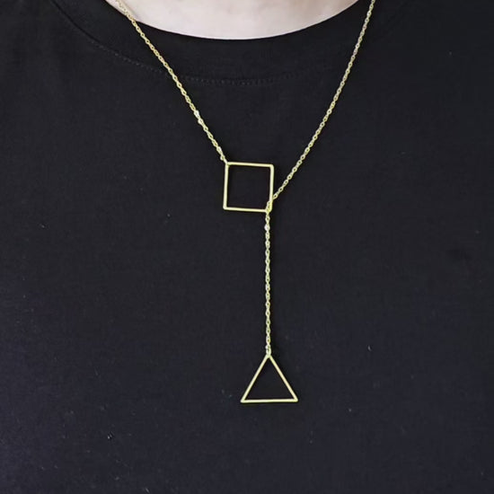 Collar con un dije cuadrado y triangular de Acero Inoxidable