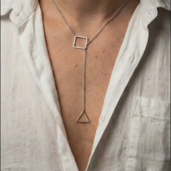 Collar con un dije cuadrado y triangular de Acero Inoxidable