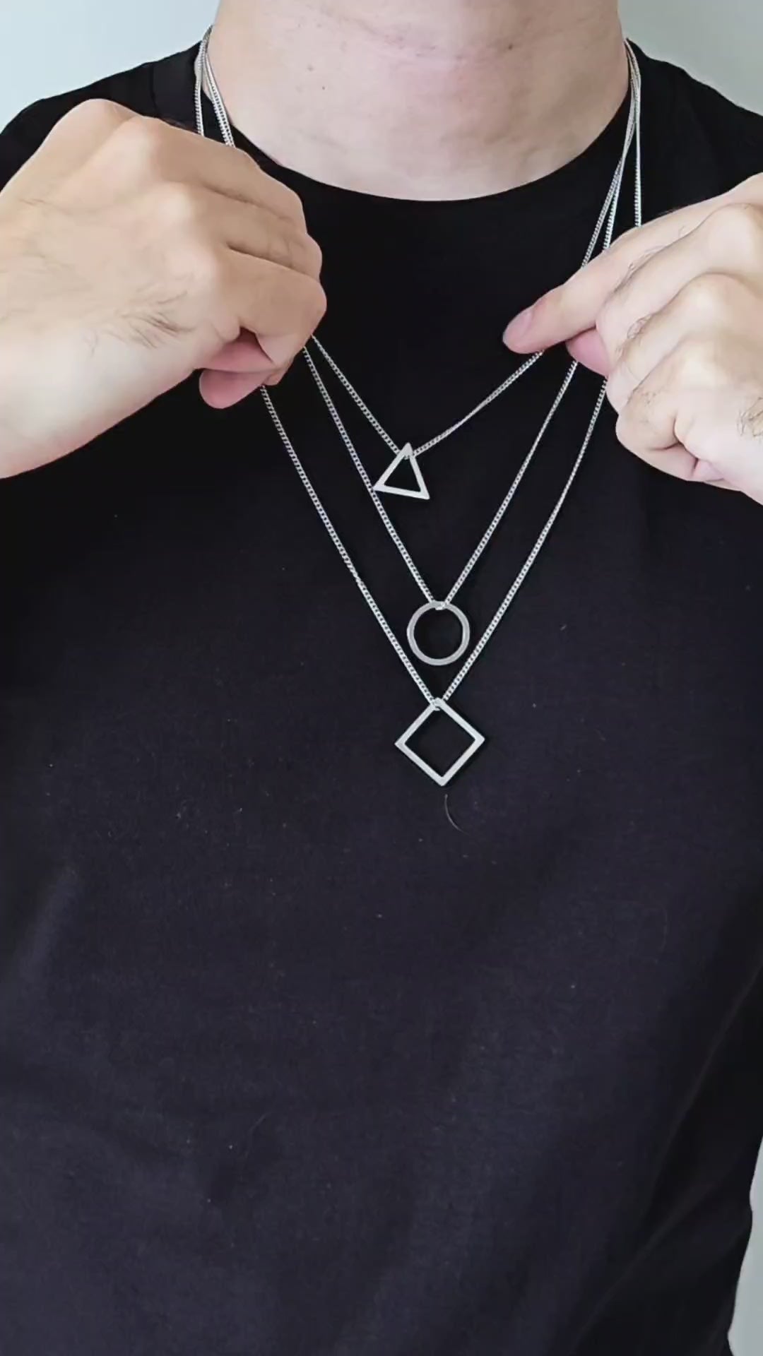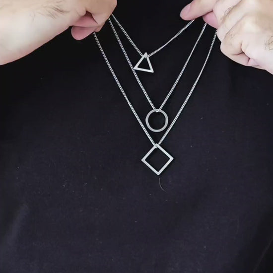 Collar con triple cadena y dijes geométricos de Acero Inoxidable