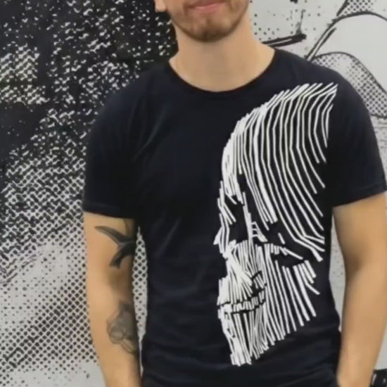 Playera manga corta estampada con una CALAVERA geométrica.