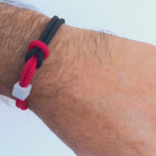 Pulsera combinada con un pequeño cubo hecho de concreto a mano.