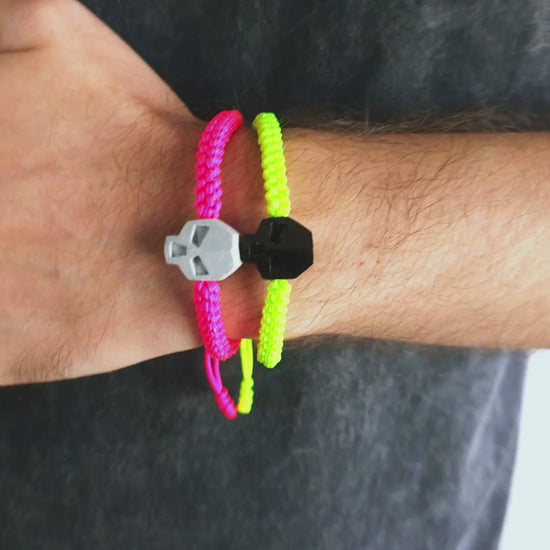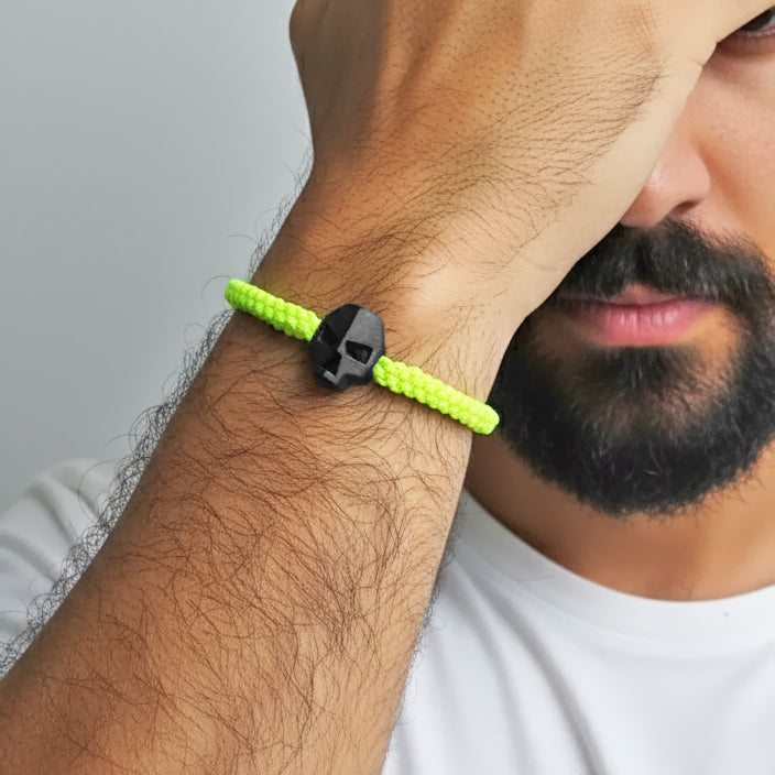 Pulsera con una pequeña calavera hecha de concreto a mano.