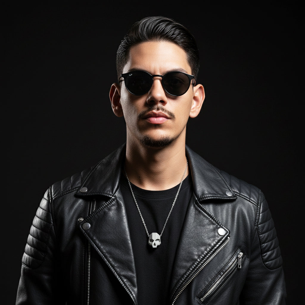 Collar con dije de Calavera Geométrica hecha de concreto.
