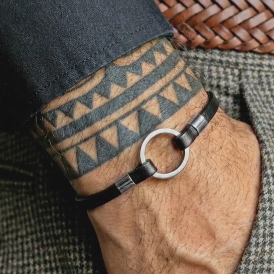 PULSERA ARO DE ACERO Y CORDON PIEL