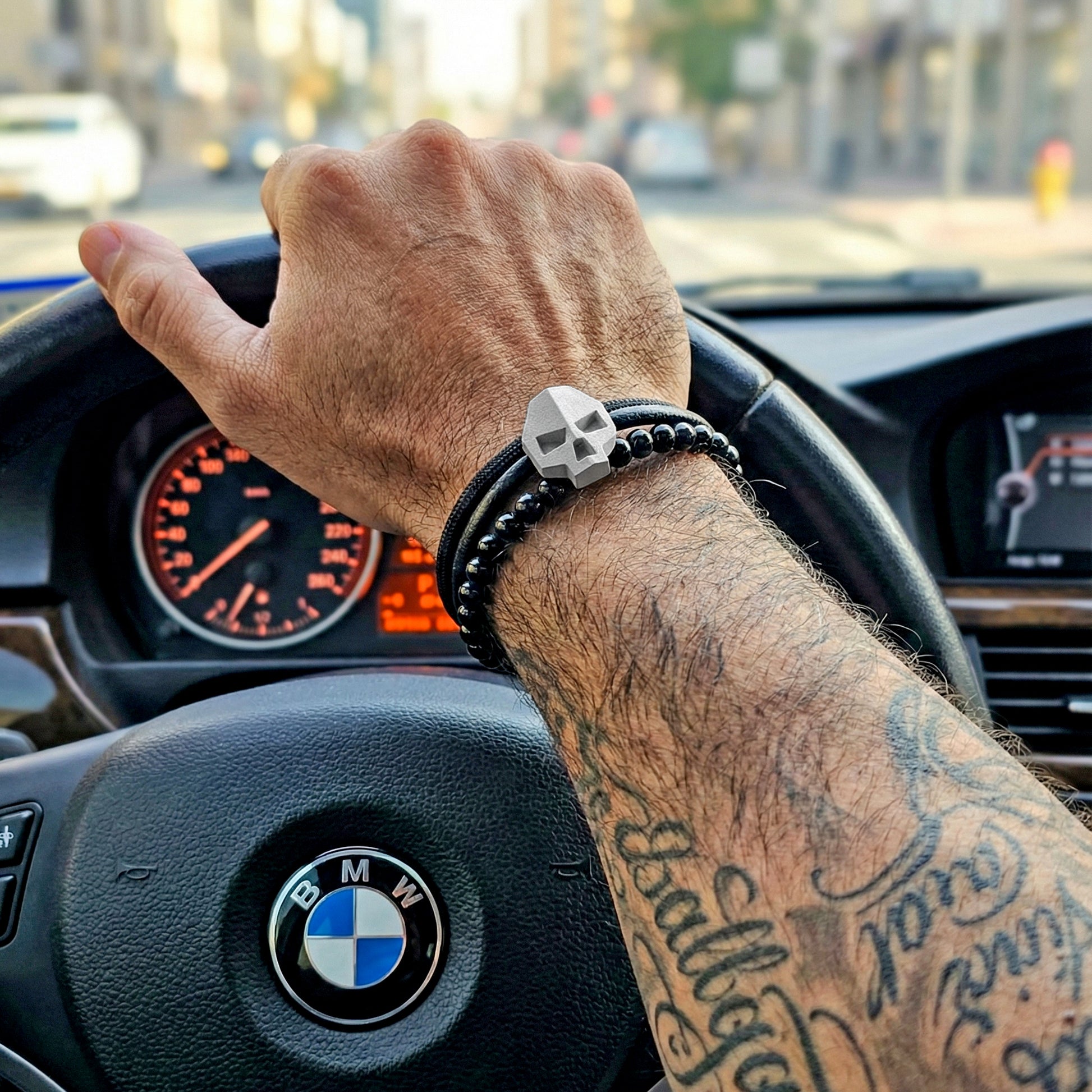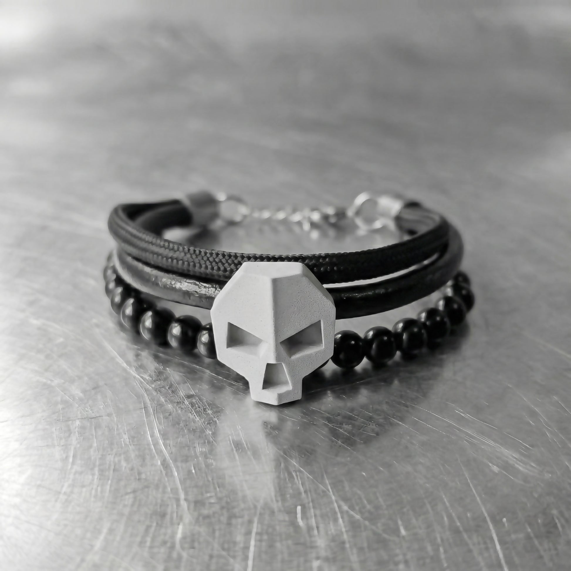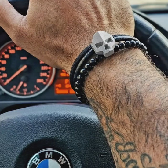 SKULL PULSERA TRIPLE CON CALAVERA Y CORDONES MIXTOS