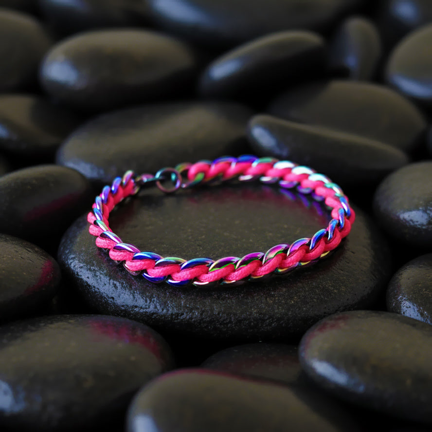 PULSERA CADENA DE ACERO TORNASOL CORDON ROSA